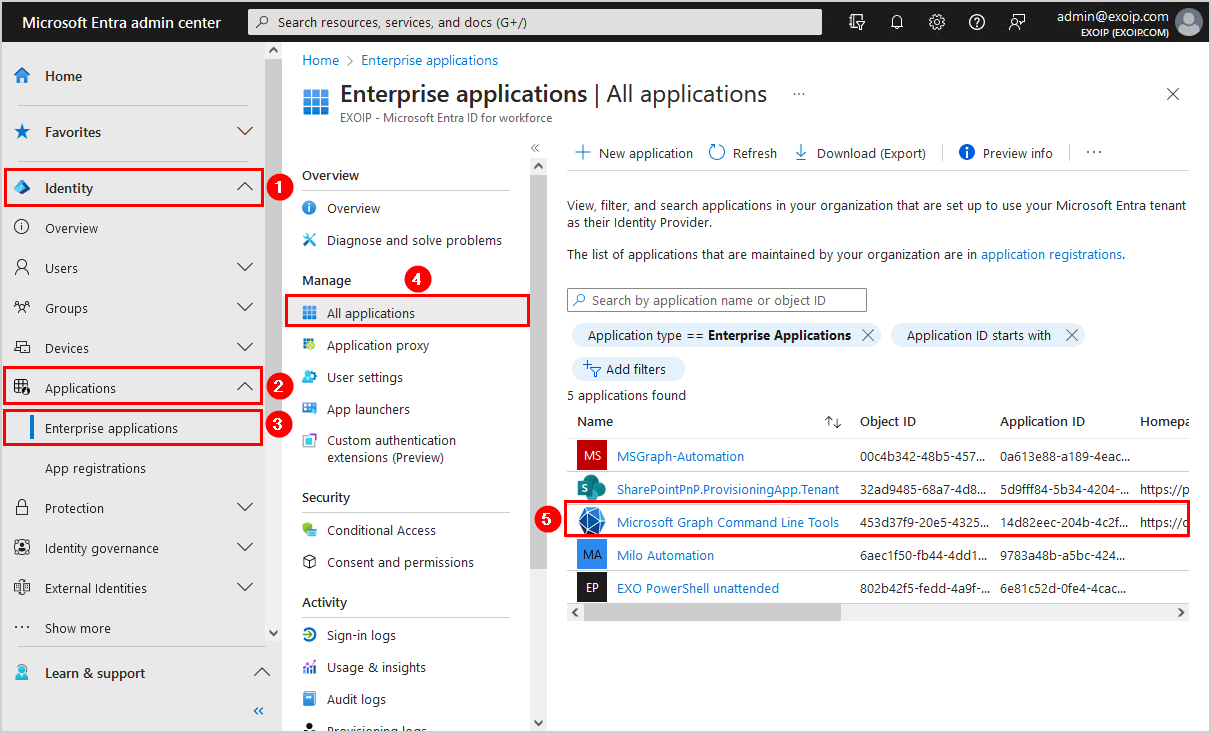 在我们的示例中,我们将选择Microsoft Graph 命令行工具应用。