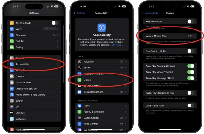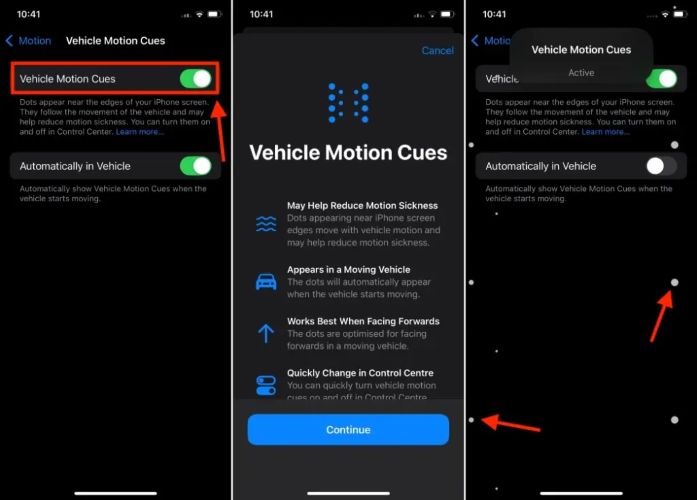 苹果在 iOS 18 中添加了一项名为“车辆运动提示”的功能。目的是减少晕动病。当 iPhone 静止时,它会在屏幕边缘显示为小白点。当汽车加速、减速或转弯时,这些小白点会移动。如果您不需要它们,可以按照以下步骤在几秒钟内将其关闭: