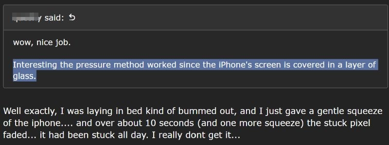 更换屏幕后,一些用户会注意到微弱的白色或彩色点,这些点通常是卡住的像素。当一群像素被捕获并显示为单一颜色时,就会发生这种情况。
