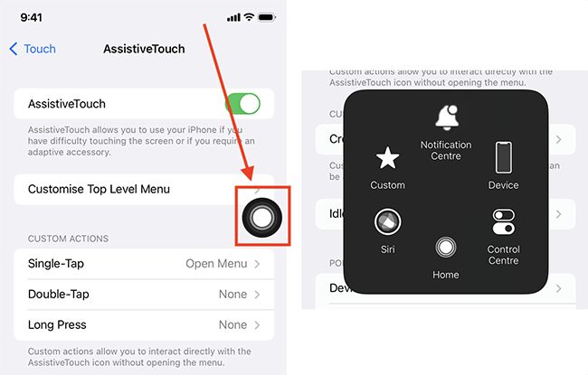 如果拖动时屏幕上的白点四处移动,则表明它是辅助触控。这是苹果为快速操作而添加的虚拟主页按钮。当你点击它时,它甚至会打开一个小控制菜单,其中包含音量和屏幕截图等手势的快捷方式。