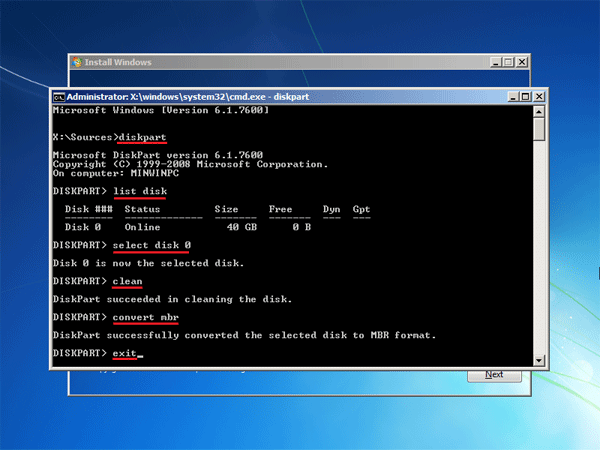 现在,我们需要将硬盘驱动器从GPT转换为MBR,因为Windows 7无法在GPT分区上安装。请按照以下步骤: