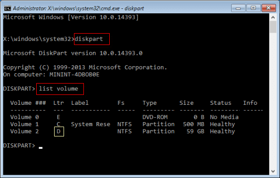 记下您的 Windows 驱动器盘符启动驱动器(例如:系统重置)和Windows驱动器。在我的示例中,C: 是系统保留分区和 D: 是我的实际视窗分割。
