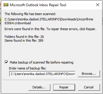 • 您可能需要多次运行此工具才能完全修复 PST 文件。