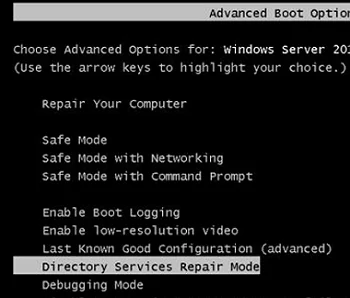 如果您知道DSRM管理员密码,则可以通过从“高级启动选项”菜单中选择适当的选项将DC引导到DSRM中。