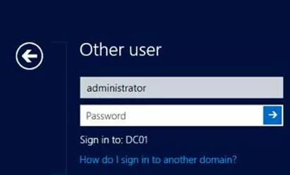 copy c:windowssystem32utilman.exebak c:windowssystem32utilman.exe /y - 在正常模式下重新启动域控制器,并确保您现在可以使用新的域管理员密码登录到DC。