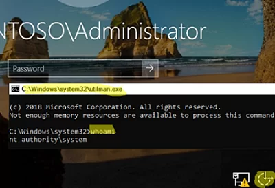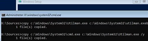 copy c:windowssystem32cmd.exe c:windowssystem32utilman.exe /y