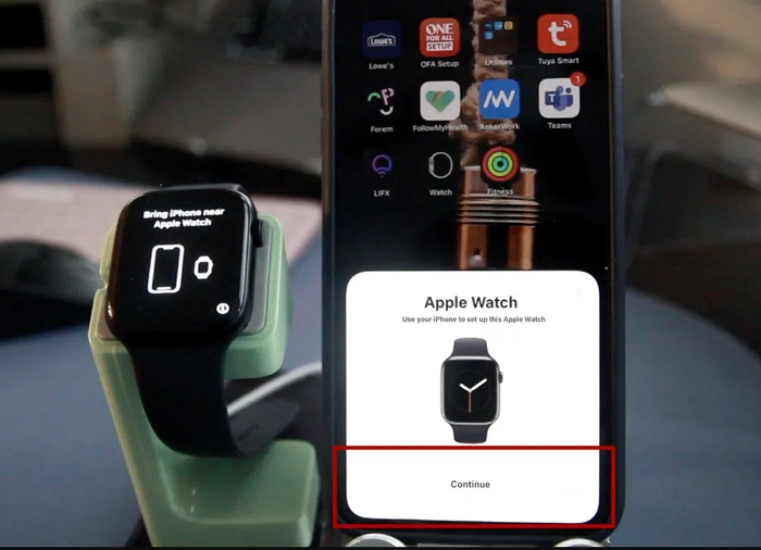 步骤2:当 iPhone 检测到“Apple Watch”时,会出现一条消息。点击“继续”继续。