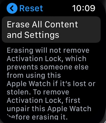 第4步:最后,点击“重置”并再次选择“重置”以确认操作。重置过程完成后,您可以再次设置 Apple Watch 并从备份中恢复其数据(如果有)。