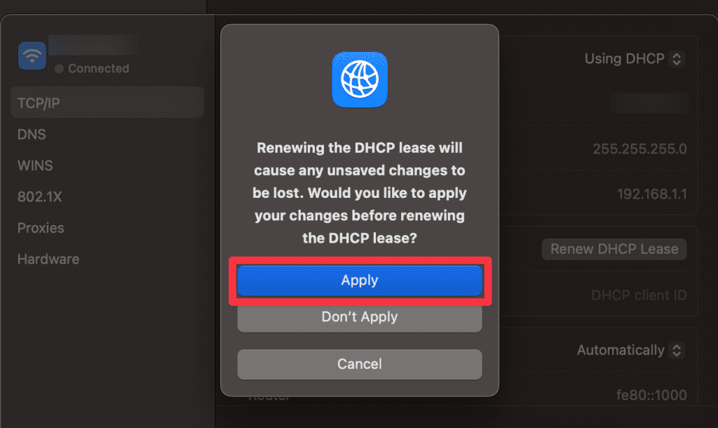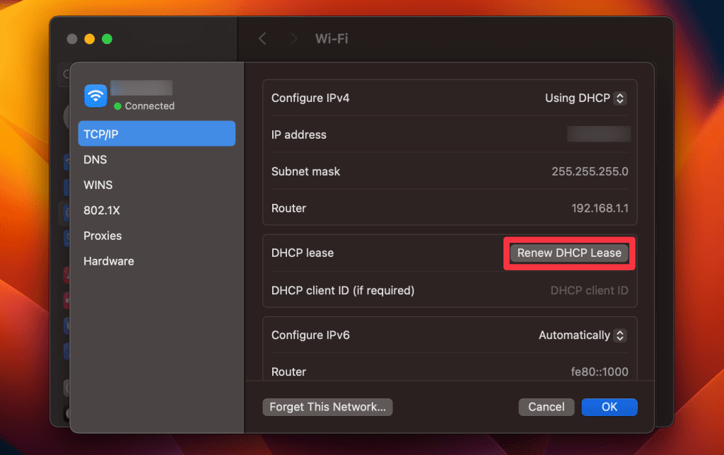 您的 Mac 现在将重置所选网络连接的网络设置。重置后,您可能需要重新连接到 Wi-Fi 网络或以太网连接。