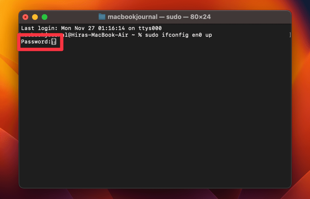 - 等待命令执行。这可能需要几分钟的时间,并且您的 Wi-Fi 应关闭(或打开,具体取决于您使用的命令)。
