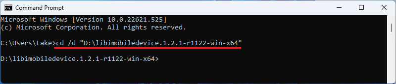 “D:libimobiledevice.1.2.1-r1122-win-x64”并击中进入。