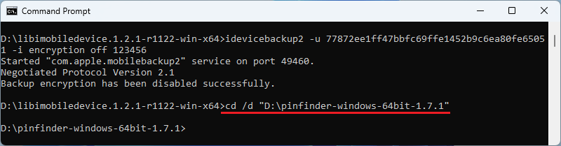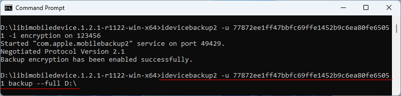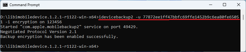 123456并按 Enter 键,启用备份加密。在此命令中,“123456”是