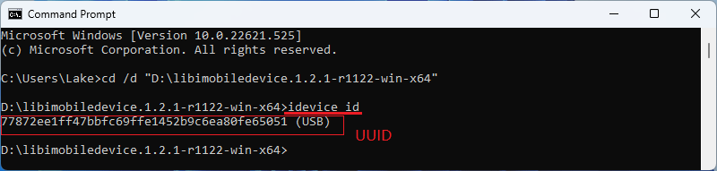 进入获取 iPhone 的 UUID。 (UUID 将在以下命令行中使用。)