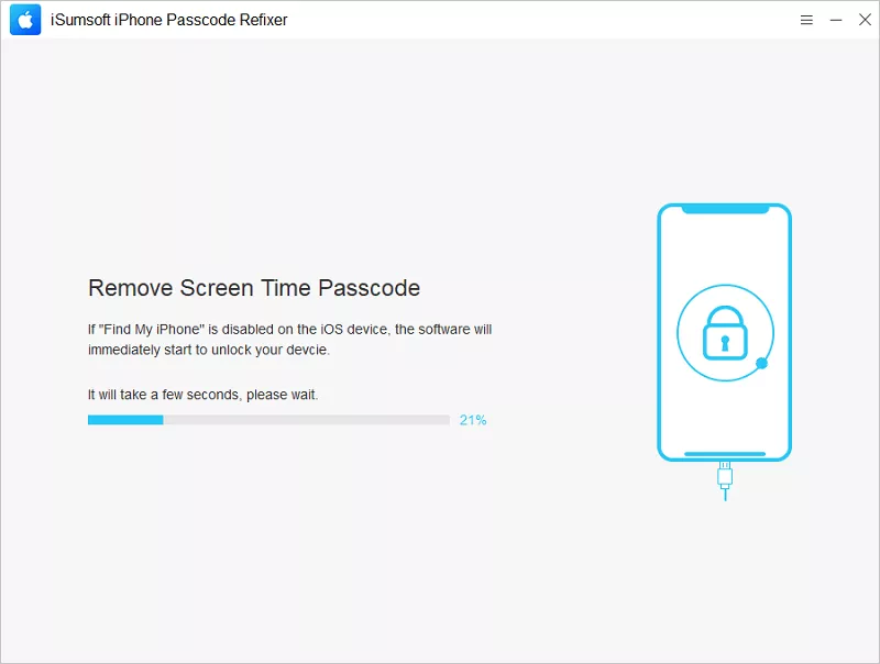 第6步:保持 iPhone 连接并等待删除屏幕时间密码完成。它