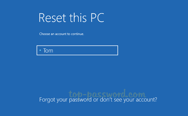 如果您选择了“保留我的文件”选项,下一个屏幕将提示您选择电脑上现有的管理员帐户以继续。