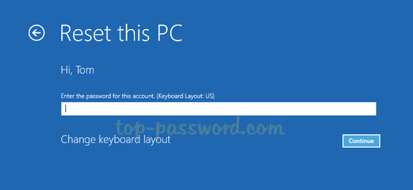 接下来,输入您的用户密码。如果您忘记了密码,则必须返回上一步并选择“删除所有内容”。