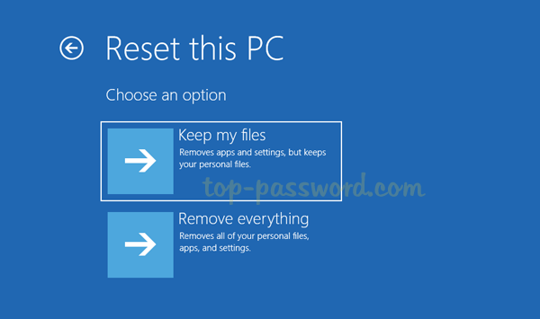 您会看到两个选项:“保留我的文件“ 和 ”删除所有内容“。前者将保留您的所有个人文件,但稍后需要您提供当前的管理员密码。如果您忘记了密码,则必须选择后一个选项来删除所有内容。