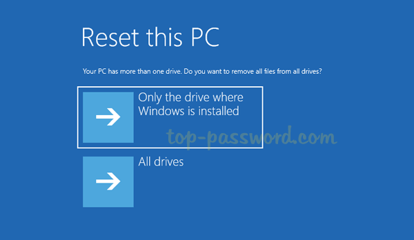 如果您选择了“删除所有内容”选项,接下来系统会询问您是否要擦除所有驱动器,还是仅擦除安装 Windows 10 的驱动器。