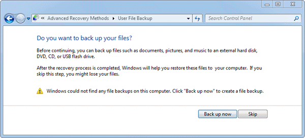 - 选择创建一个立即备份,或到跳过并继续恢复出厂设置,无需备份任何当前文件。