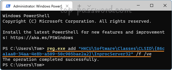 reg.exe delete "HKCU\Software\Classes\CLSID\{86ca1aa0-34aa-4e8b-a509-50c905bae2a2}" /f