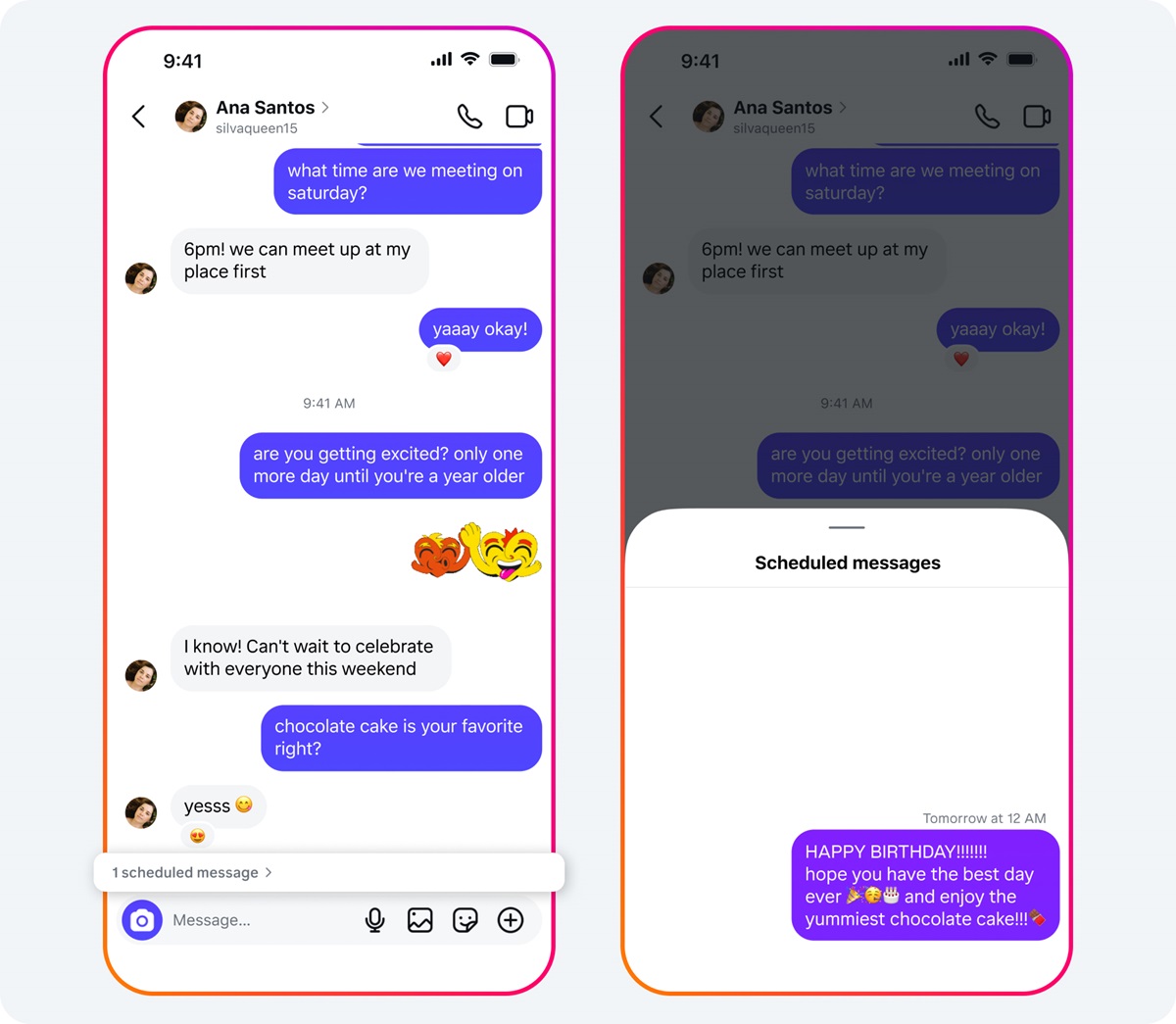 预定消息在发送之前保持私密状态,并且可以在聊天中的预定消息下进行访问。您还可以使用其他 Instagram DM 功能,例如消息翻译、音乐贴纸、固定消息和群聊二维码。