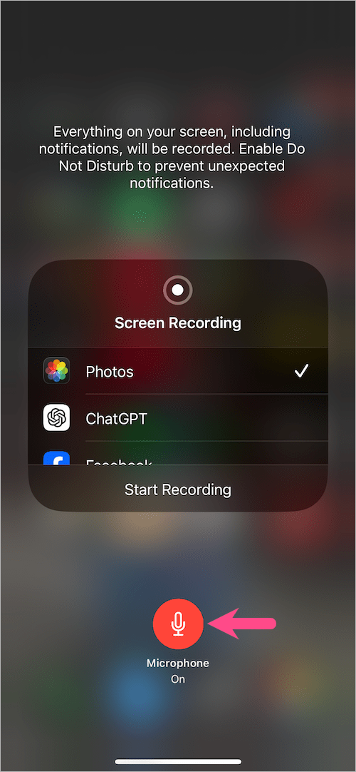 - 要开始录制,请点击屏幕录制按钮(圆圈内的白点)。 3 秒倒计时后,您的 iPhone 将开始录制屏幕。