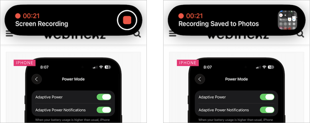 - 要停止,请再次打开控制中心并点击“录制”按钮。
