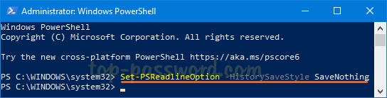 Set-PSReadlineOption -HistorySaveStyle SaveNothing
