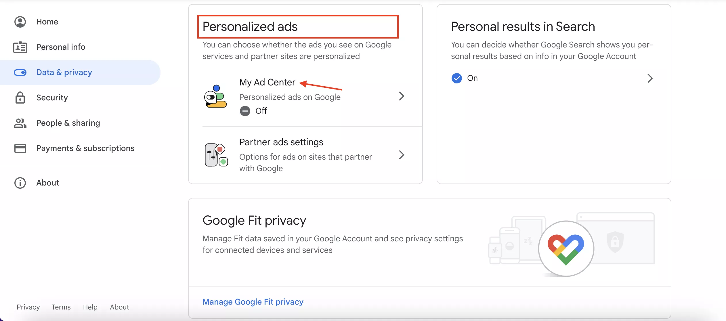 - 前往我的广告中心在您的 Google 帐户设置中。
