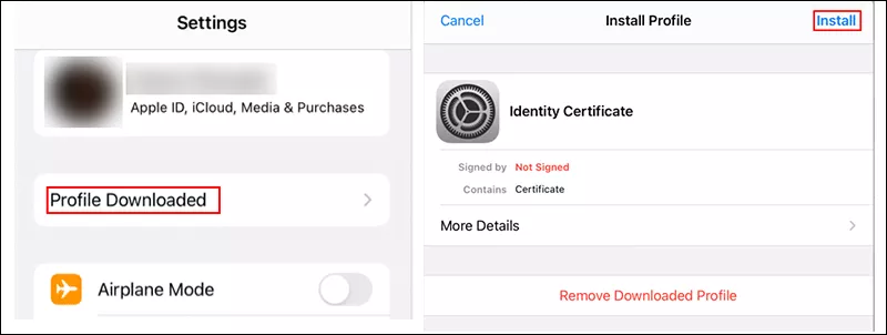 第4步:导航至 iPhone 设置 >资料已下载。然后点击安装。按照向导完成安装。