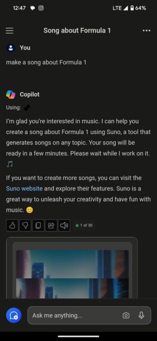 在当前的测试阶段,Copilot 打开其主活动页面,而不是浮动 UI,这可能看起来有点不传统。此外,人工智能不会自动响应语音命令,需要用户点击麦克风图标或输入查询。