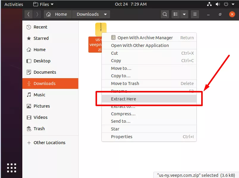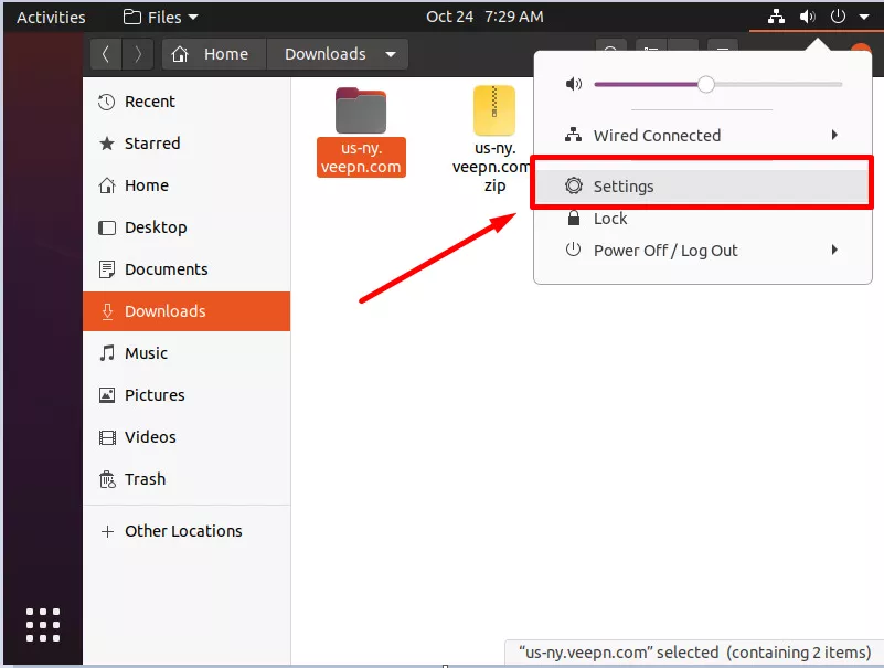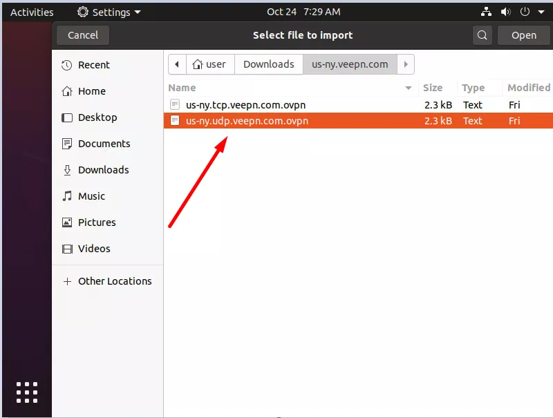 - 配置 VPN 设置。从 VeePN 帐户的配置文件中获取适合您的 VPN 位置的文件。下载后,解压文件。