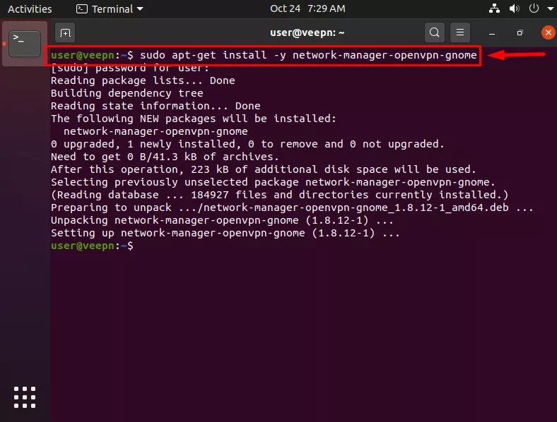 - 打开终端并使用以下命令在 Ubuntu 上安装 OpenVPN 网络管理器: sudo apt-get install -y network-manager-openvpn-gnome