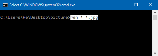 待办事项:键入命令:ren * * .jpg在命令提示符窗口中,按进入。
