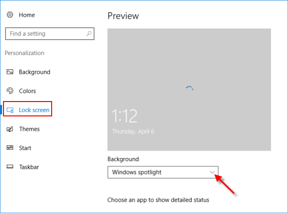 在下面使用这些步骤将Windows Spotlight图像设置为锁定屏幕背景。