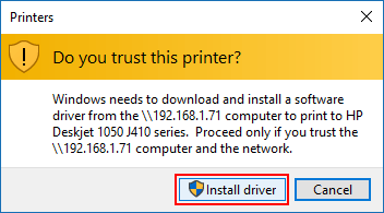 步骤3:当提示“您信任这台打印机吗”对话框时,单击安装驱动程序。