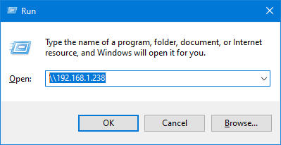 - 在要访问共享打印机的网络计算机上,按赢+右打开“运行”框的键盘快捷键。输入您的主 PC 的 IP 地址,然后按 Enter。