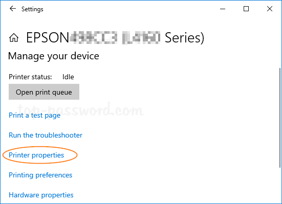 - 在下一个窗口中,单击“打印机属性“ 关联。