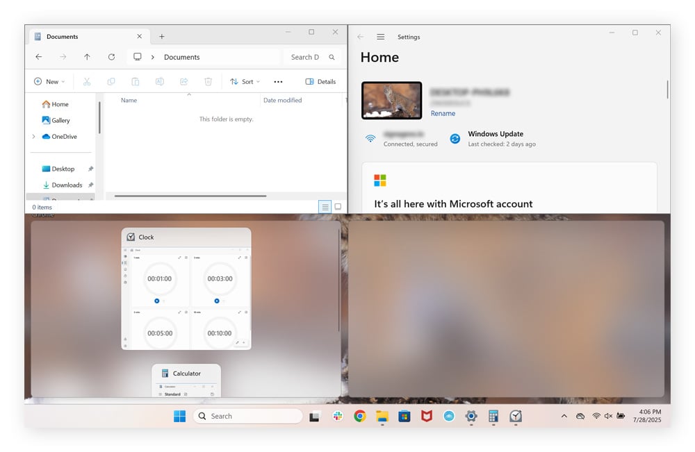 分屏是一项 Windows 功能,可让您更轻松地处理多任务,从而帮助您提高工作效率 - 无论您是在比较文档、遵循教程并做笔记,还是在浏览时聊天。