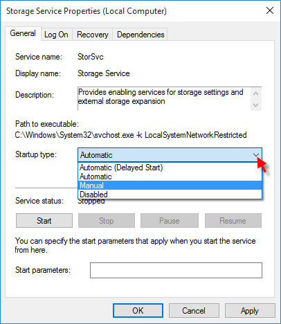 您可以将该服务设置为自动启动(值数据 = 2)、手动启动或禁用它。如果我想启动该服务手动,所以我输入数字3在那个盒子下面价值数据。