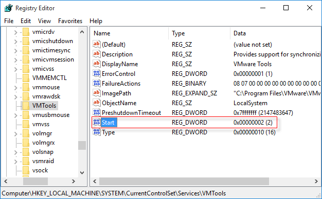 HKEY_LOCAL_MACHINESYSTEMCurrentControlSetServicesVMTools
