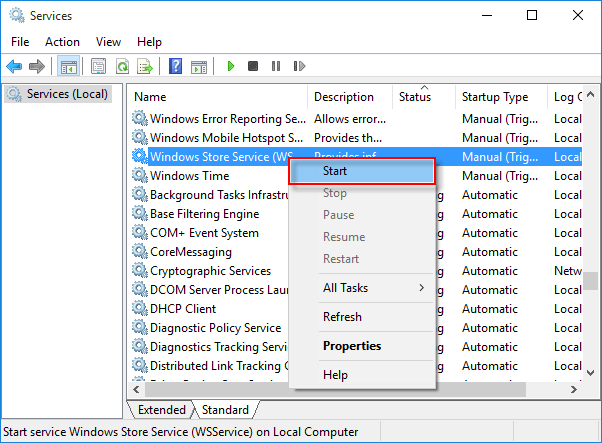 步骤 2:然后启动、停止或禁用任何您想要更改其操作的服务。要启动服务,请右键单击它,然后单击开始。