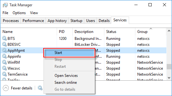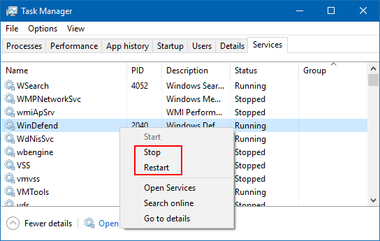 您可以在任务管理器中轻松启动、停止和重新启动服务。