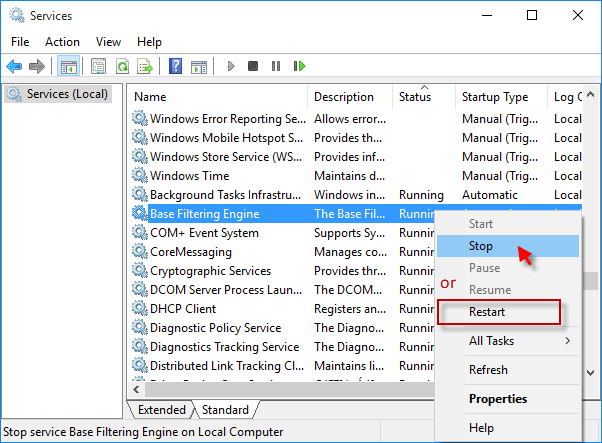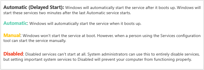 选择停止或重新启动服务时要小心,因为如果将这些服务设置为残疾人,Windows 将阻止它们启动。