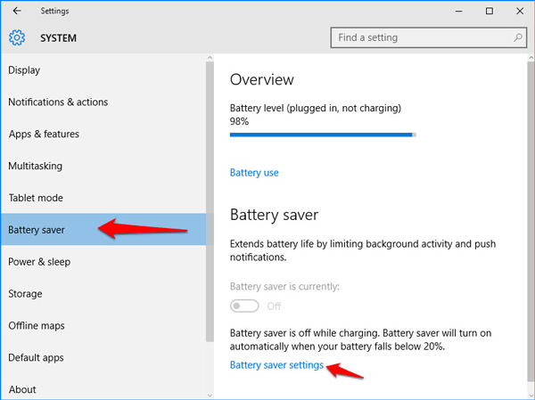 只需单击操作中心底部快速操作区域中的省电开关即可