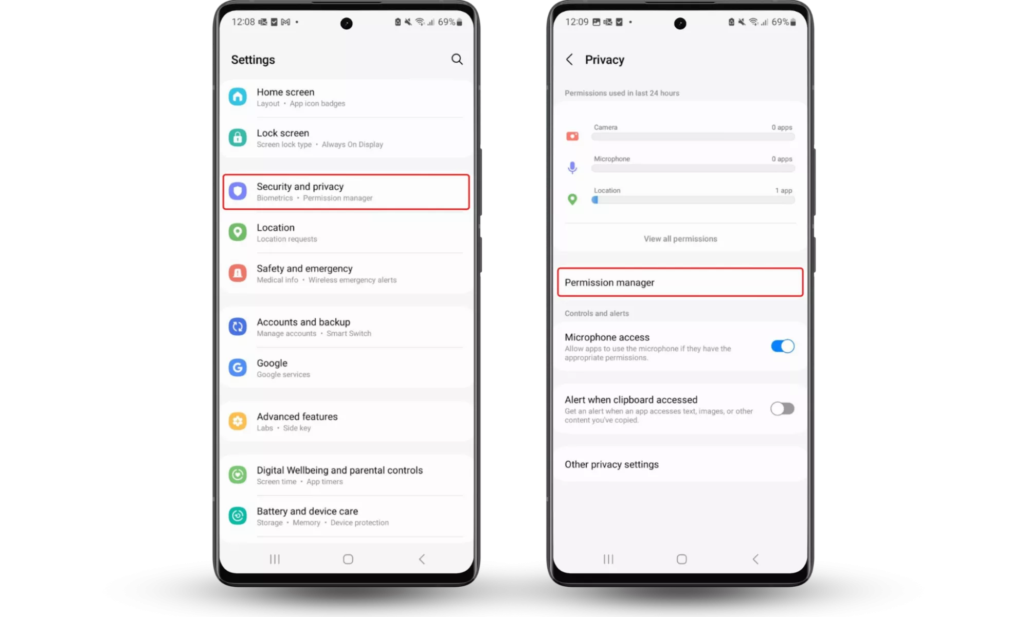 - 前往设置 > 隐私和安全。查看手机上的功能,看看哪些应用程序可以访问它们。