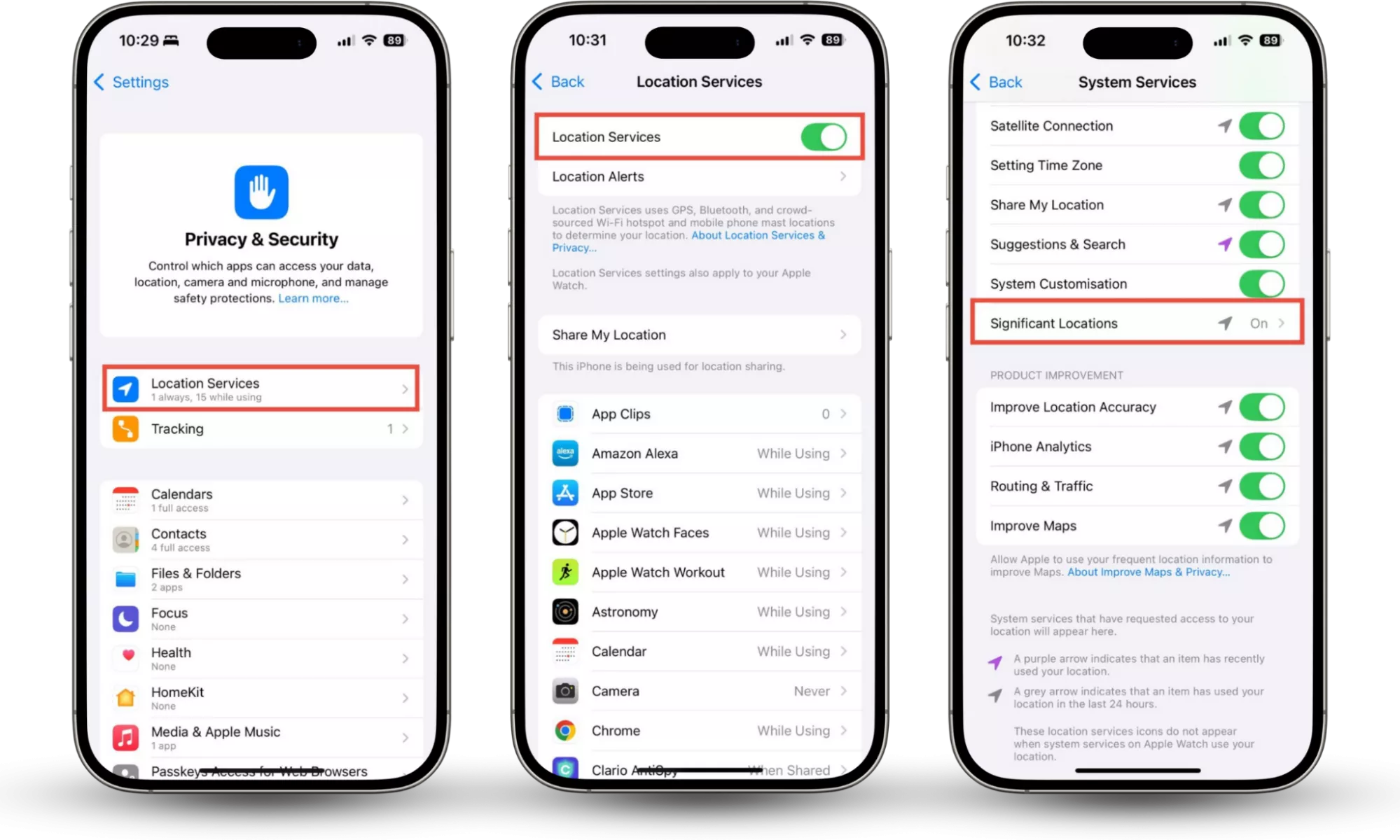 - 前往设置 > 隐私和安全,然后点击定位服务。