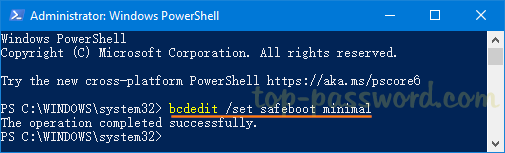 - 首先,您需要强制 Windows 10 默认启动到安全模式。只需以管理员身份打开命令提示符并运行以下命令: