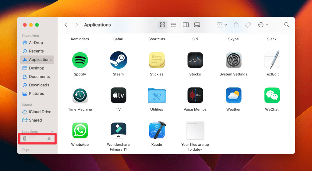 - 使用 USB 数据线将 iPhone 连接到 Mac。