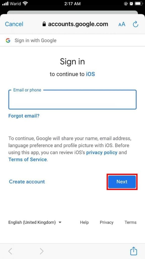 - 输入您的 Gmail 地址和密码以登录并单击下一个。